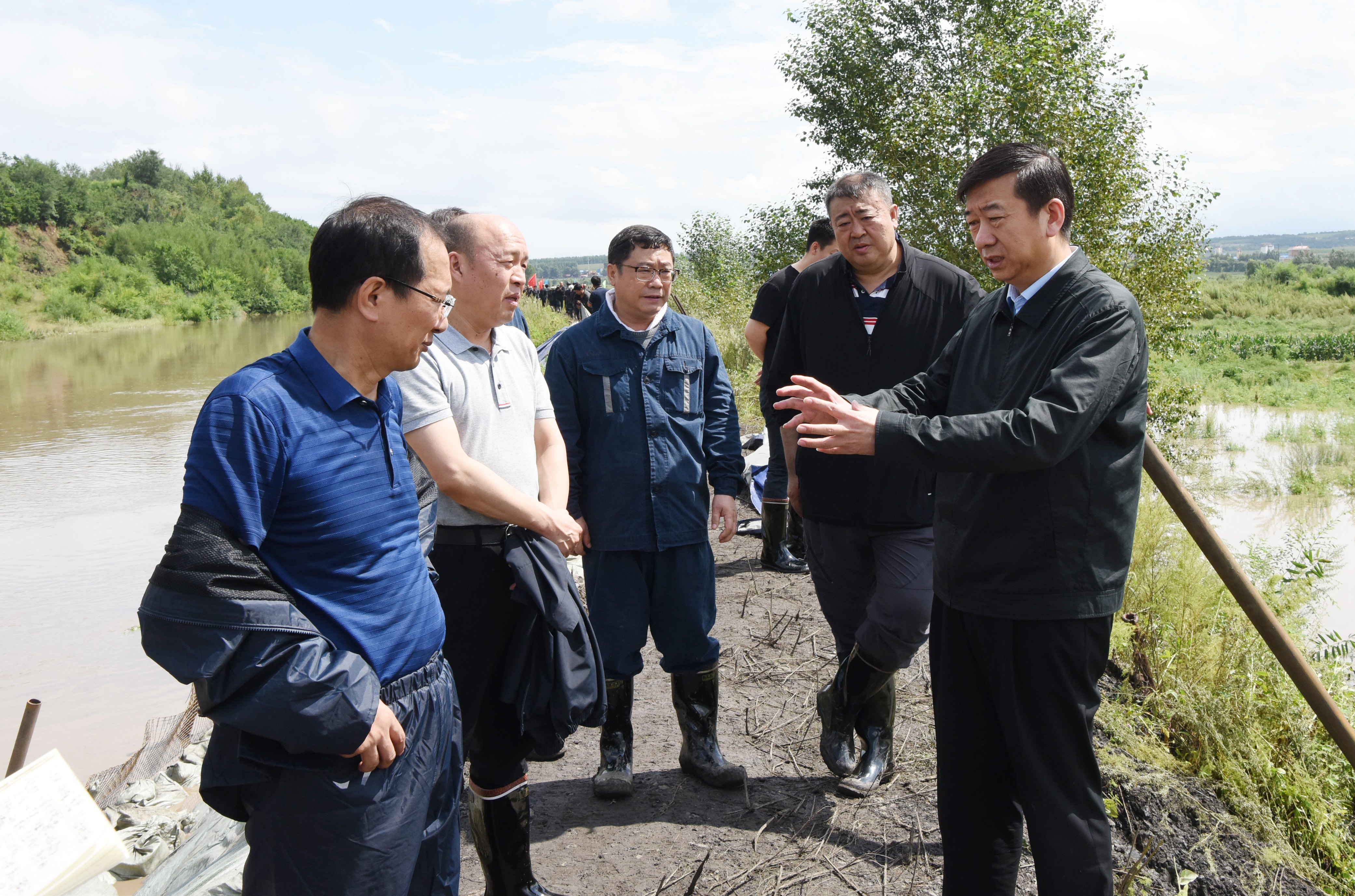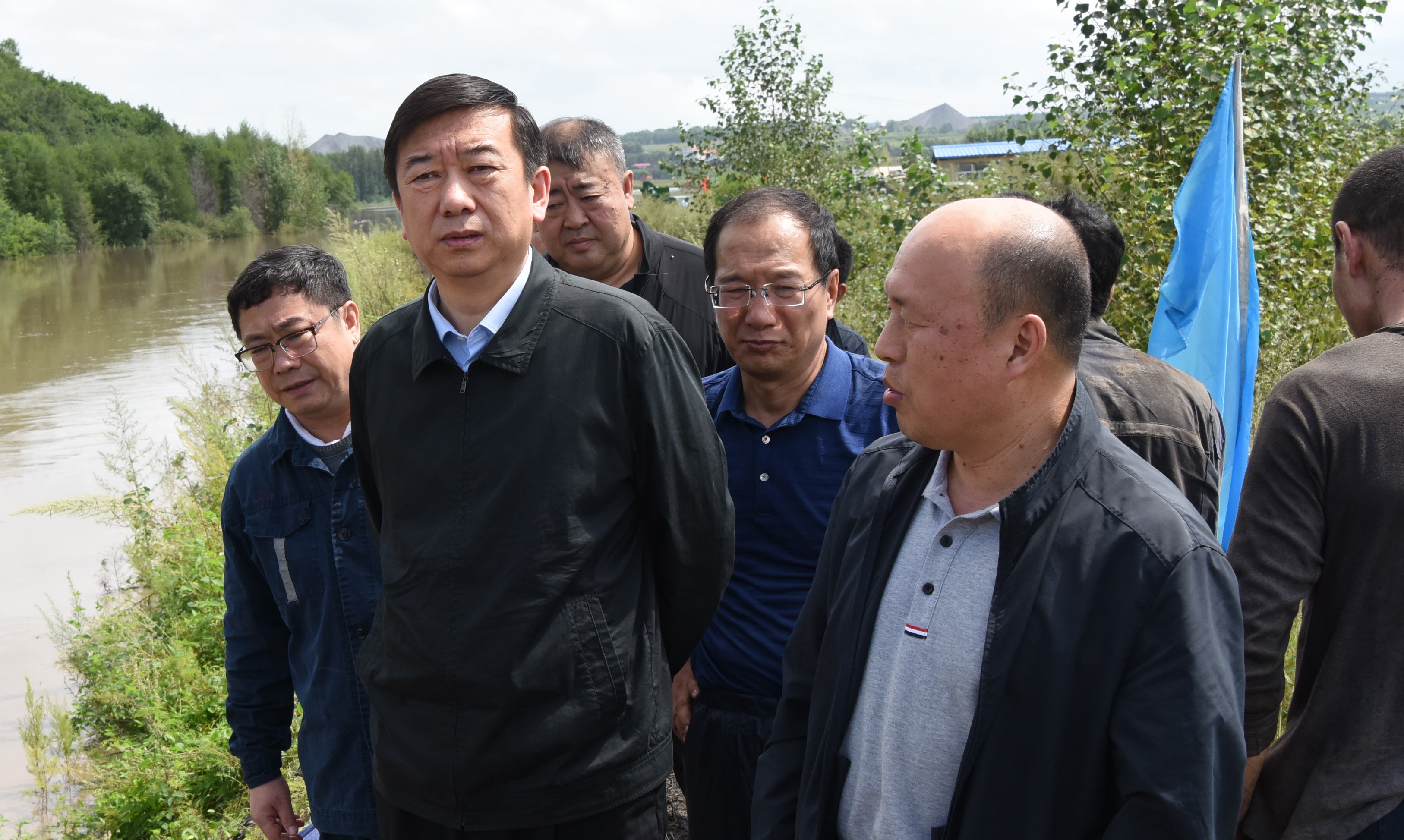 七臺河礦業公司黨委書記、董事長張長山,總經理劉金奇,集團公司相關部門有關人員參加防汛巡查。(張國偉)