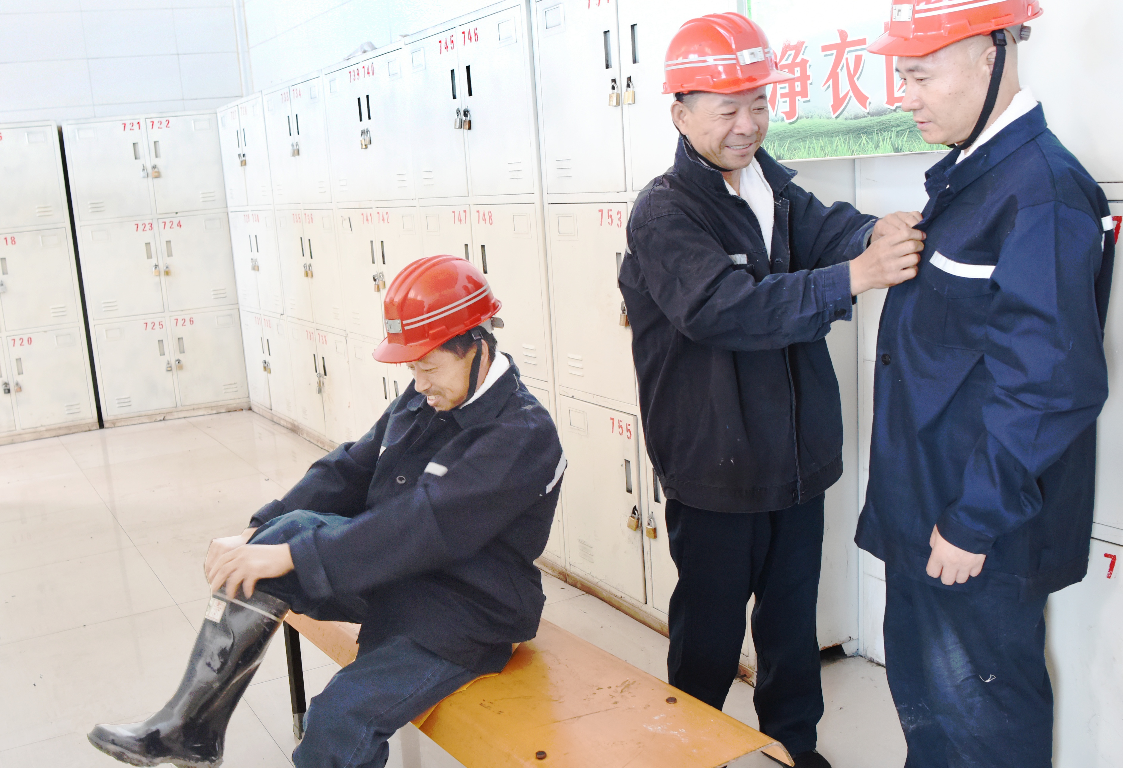在各生產(chǎn)煤礦,職工工作服實現(xiàn)公管,采掘工每人3套、井下輔助工每人2套,工作服保證三天一洗、三天一換,采掘一線或水大工作面的工人可以每班都換洗,確保入井作業(yè)人員穿著清潔干爽的工作服入井作業(yè);設(shè)立洗衣房義務(wù)為職工清洗、縫補工作服,使每一位職工上下班都能“舒心”、“安心”;統(tǒng)一職工作業(yè)服編號、更衣箱編號、烘干箱編號,做到“一人一戶”,杜絕了混放、丟失現(xiàn)象,便于職工隨時更換衣物,也方便服務(wù)人員管理,提升了服務(wù)質(zhì)量,確保職工每天都能在舒適的環(huán)境下身心愉快地投入工作,形成團結(jié)奮進的良好格局。
