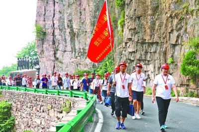 圖為學員們在位于太行山深處的回龍掛壁公路教學點進行體驗式教學。徐坤攝/光明圖片