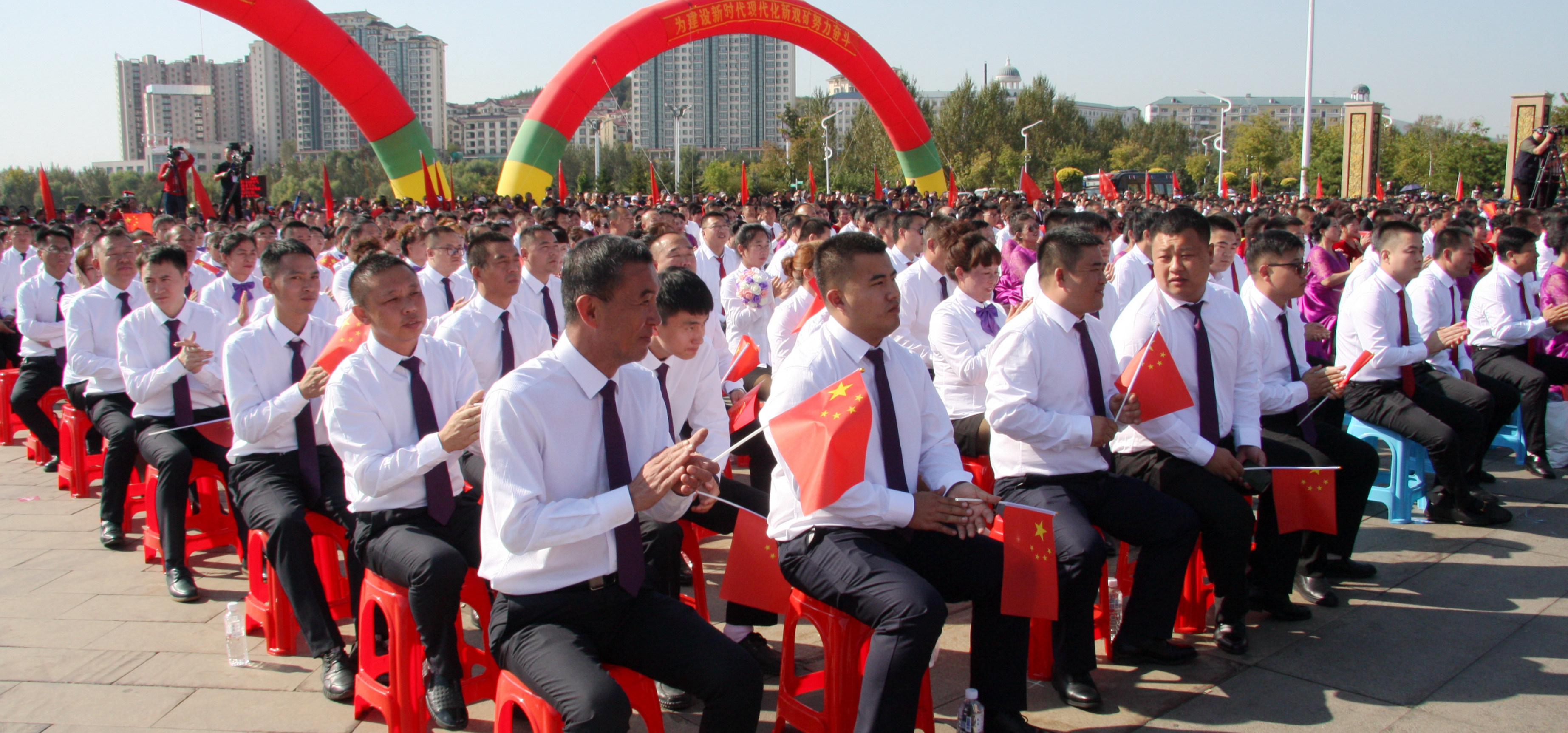 看,從百里礦區(qū)走來,高舉國旗、身著盛裝,意氣風(fēng)發(fā)、斗志昂揚。