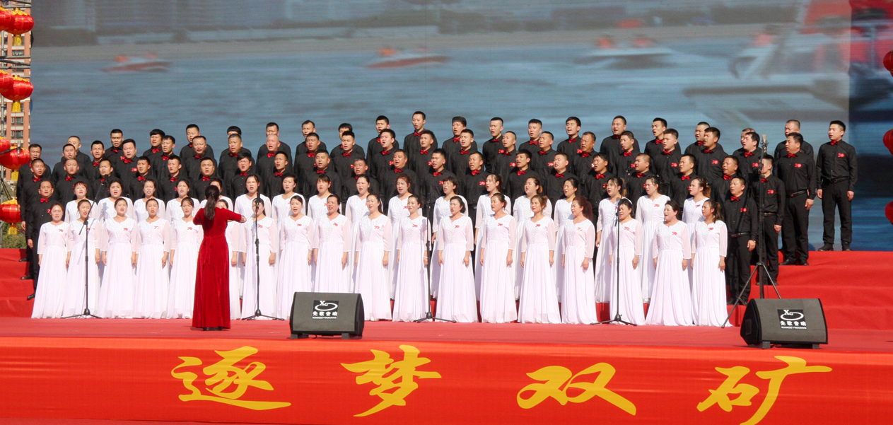雙礦公司黨委書記趙生在詠唱大會致辭時說:“在舉國上下熱烈迎慶新中國成立70周年的喜慶之際,今天,我們在這里隆重聚會,舉行歌曲詠唱大會,用昂揚奮進(jìn)的歌聲,用煤礦職工對祖國摯愛的真情實感,祝賀偉大祖國70歲華誕。1949年10月1日,隨著隆隆的禮炮聲,毛澤東主席莊嚴(yán)地向全世界宣告,中華人民共和國成立了!經(jīng)過70年砥礪奮進(jìn),中國人民不僅站起來,而且富起來、強起來,如今一個到處充滿勃勃生機(jī)的中國,已巍然屹立在世界東方。作為先于新中國成立、伴隨共和國成長的雙鴨山礦業(yè)公司,70年來,一代代雙礦人秉承“特別能吃苦、特別能戰(zhàn)斗、特別能奉獻(xiàn)”的優(yōu)良傳統(tǒng),不畏艱難、激情創(chuàng)業(yè),自強不息、奮勇前進(jìn),不忘初心、接力奮斗,發(fā)展企業(yè)、造福職工、貢獻(xiàn)社會,為新中國經(jīng)濟(jì)建設(shè)作出了雙礦人的貢獻(xiàn)。縱觀共和國70年的發(fā)展歷程,是一部氣勢恢宏、光輝燦爛的樂章;回顧雙鴨山礦業(yè)公司70年的奮斗歷史,是一首大氣磅礴、鏗鏘有力的贊歌。值此新中國成立70周年到來之際,讓我們煤礦工人放開歌喉,歌唱祖國、贊美祖國、祝福祖國,讓我們用歌聲祝愿我們的企業(yè)興旺發(fā)達(dá)!祝愿礦區(qū)的職工群眾生活更加美好!祝愿偉大的祖國繁榮昌盛!”
