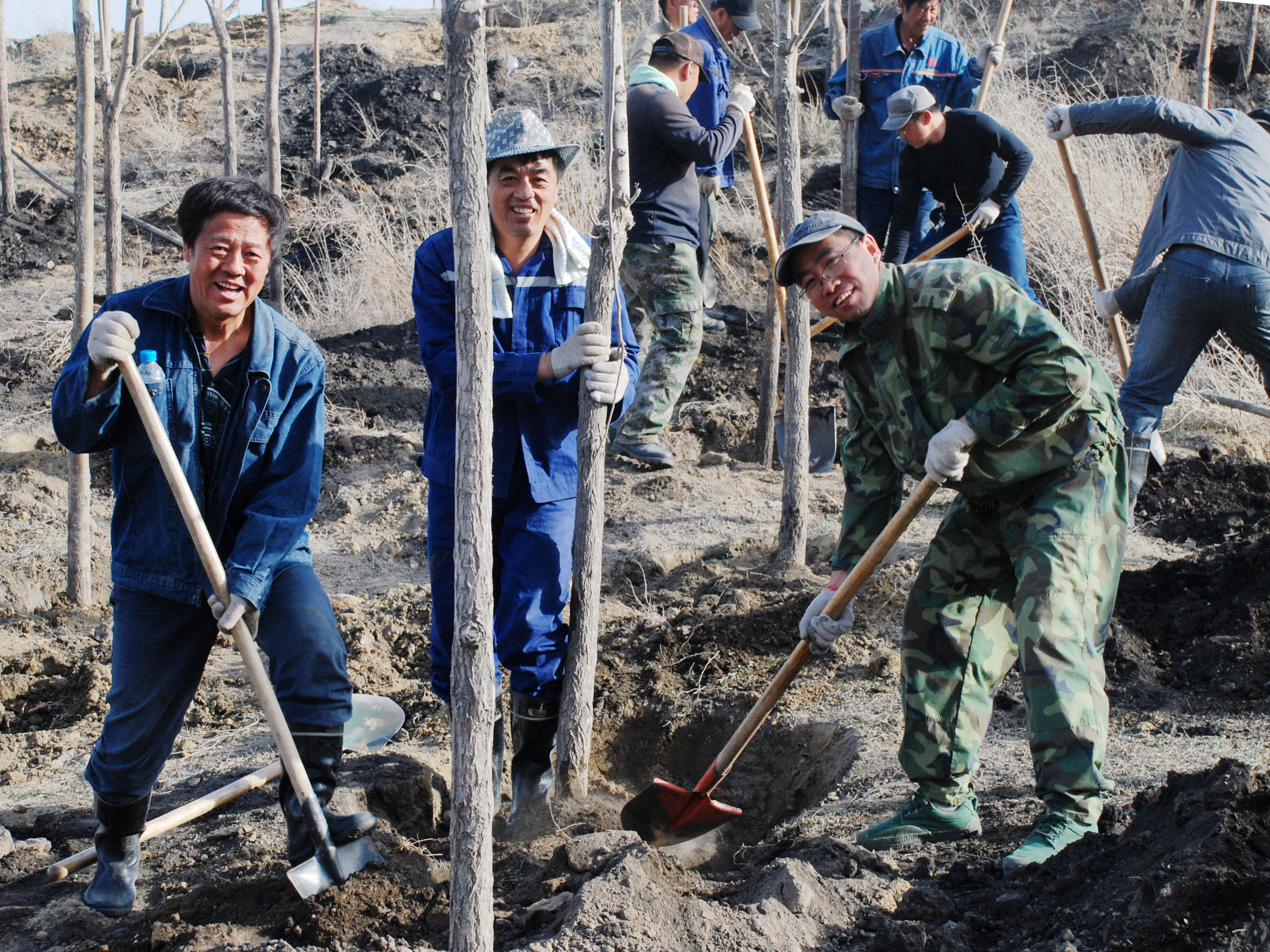 圖為2011年初春,新疆公司機關干部義務獻工參加西山煤礦植樹綠化活動。