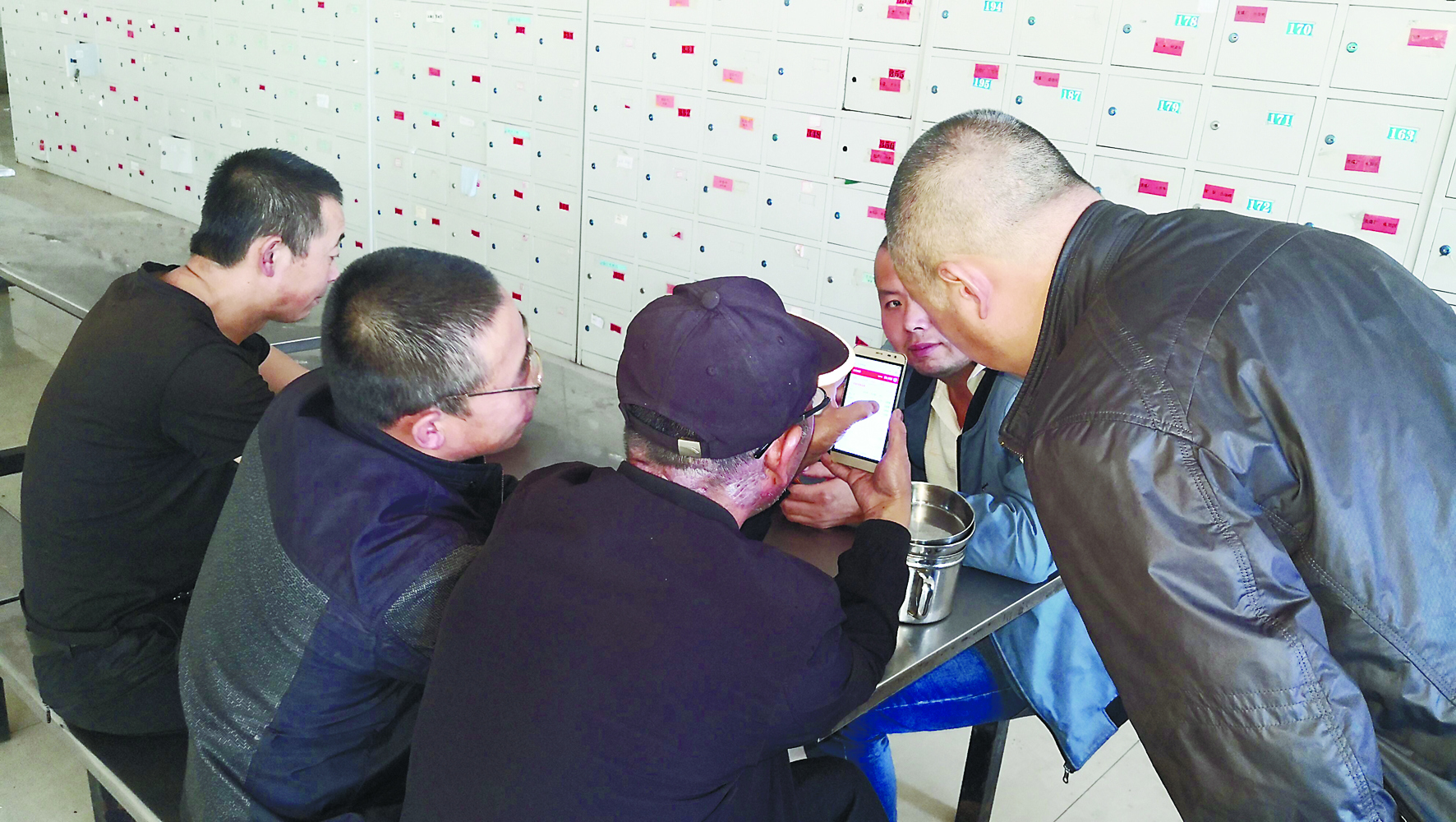 圖為黑眼泉礦一線職工利用工休閑時間在“學習興礦”云平臺答題。