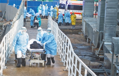 近日,醫(yī)護(hù)人員將患者轉(zhuǎn)運(yùn)至武漢火神山醫(yī)院病房。新華社記者 肖藝九攝