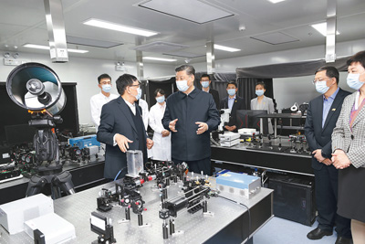 清華大學主樓二層,展示了學校近年來重點教學科研成果。習近平聽取了關(guān)于增強自主創(chuàng)新能力、助力世界主要科學中心和創(chuàng)新高地建設(shè)、提高人文社會學科教育研究水平等情況介紹,對清華大學取得的成績給予充分肯定。習近平指出,要堅持中國特色社會主義教育發(fā)展道路,充分發(fā)揮科研優(yōu)勢,增強學科設(shè)置的針對性,加強基礎(chǔ)研究,加大自主創(chuàng)新力度,并從我國改革發(fā)展實踐中提出新觀點、構(gòu)建新理論,努力構(gòu)建中國特色、中國風格、中國氣派的學科體系、學術(shù)體系、話語體系。