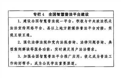拓展普法網絡平臺。以互聯網思維和全媒體視角深耕智慧普法。強化全國智慧普法平臺功能,推動與中國庭審公開網、中國裁判文書網等網絡平臺的信息共享。建立全國新媒體普法集群和矩陣,發揮“學習強國”等平臺優勢,形成多級互動傳播。建設全國統一的法律、法規、規章、行政規范性文件、司法解釋和黨內法規信息平臺,及時更新數據,免費向公眾開放。