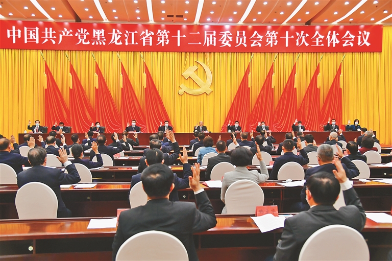 全會以習近平新時代中國特色社會主義思想為指導,傳達了黨的十九屆六中全會精神,審議通過《中國共產黨黑龍江省第十二屆委員會第十次全體會議關于召開中國共產黨黑龍江省第十三次代表大會的決議》,許勤就《決議(討論稿)》向全會作了說明。全會決定,2022年4月召開省第十三次黨代會。