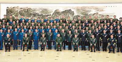 會前,習近平親切接見出席十四屆全國人大一次會議解放軍和武警部隊代表團全體代表,并同大家合影留念。
