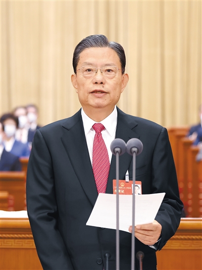黨的二十大擘畫了全面建成社會主義現代化強國、以中國式現代化全面推進中華民族偉大復興的宏偉藍圖。十四屆全國人大及其常委會要全面貫徹黨的二十大精神,認真履行憲法法律賦予的職責,堅持黨的領導、人民當家作主、依法治國有機統一,把人民代表大會制度堅持好、完善好、運行好,推動黨的二十大確定的目標任務落實見效,為全面建設社會主義現代化國家貢獻力量。