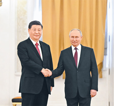 本報莫斯科3月21日電 (記者杜尚澤、曲頌)當地時間3月21日下午,國家主席習近平在莫斯科克里姆林宮同俄羅斯總統普京舉行會談。兩國元首就中俄關系及共同關心的重大國際和地區問題進行了真摯友好、富有成果的會談,達成許多新的重要共識。雙方一致同意,本著睦鄰友好、合作共贏原則推進各領域交往合作,深化新時代全面戰略協作伙伴關系。