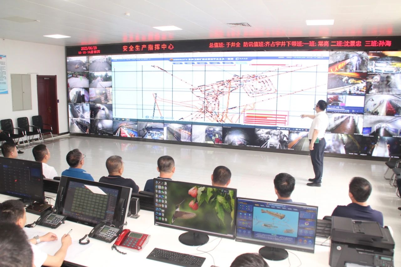 會(huì)前,與會(huì)人員觀看了東保衛(wèi)礦智能化建設(shè)專題片,聽取了煤礦智能化示范礦井各子系統(tǒng)建設(shè)情況介紹,參觀了安全生產(chǎn)指揮中心,并通過大屏幕詳細(xì)了解《煤礦綜合管控平臺(tái)一張圖》當(dāng)中生產(chǎn)態(tài)勢、安全雙控、安全監(jiān)測、人員定位、視頻可視化、綜合自動(dòng)化等應(yīng)用情況。