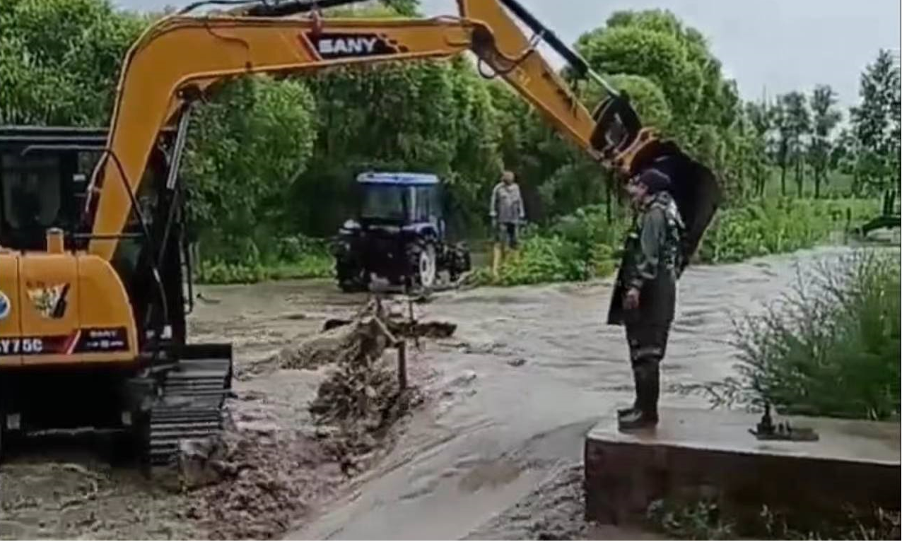 2023年以來,一〇四農副業開發基地職工和農戶一道,抗春寒、保春耕,戰洪澇、保農田,守森防、保秋收。關鍵時期,三和分公司總經理李德洪、黨委書記崔廷玉等領導和部門負責人深入抗洪一線巡河渠守大堤。一年來,一〇四基地春播前道路維修1500米,鋪墊巖石2900立方,確保春播生產順利實施。防汛抗洪期間,從6月中旬至8月末,基地全員排班值班,由經理、書記、場長帶班,24小時堅守崗位,每天對水庫及河道進行巡查;疏通溝渠4500米,加固堤壩1000余米,確保汛期農田不受水災。秋收前維修農田道路4500余米,鋪墊巖石5000余立方,為秋收生產做好準備。