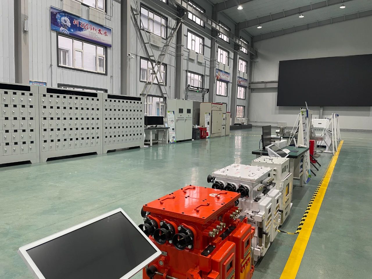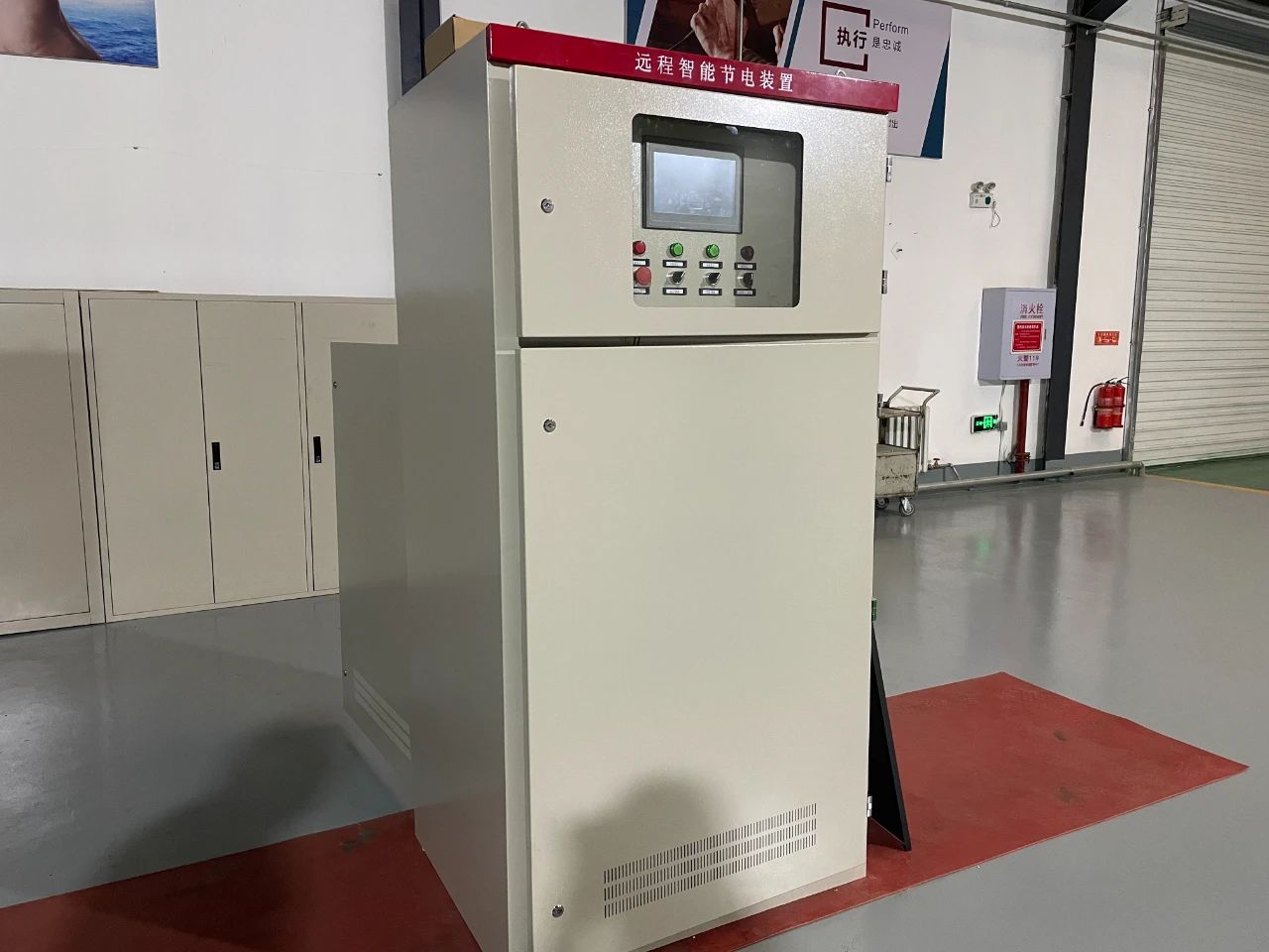 在生產車間的節能柜前,張業良說:“這是我們利用新型電機節能技術研發的節能裝置,目前已在新發煤礦洗煤廠投入使用,經現場測試,在不影響電機轉速和工況的情況下可節能40%。”