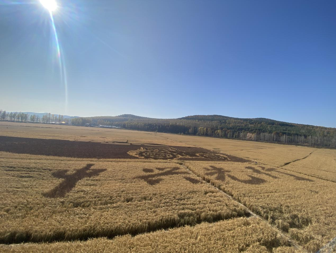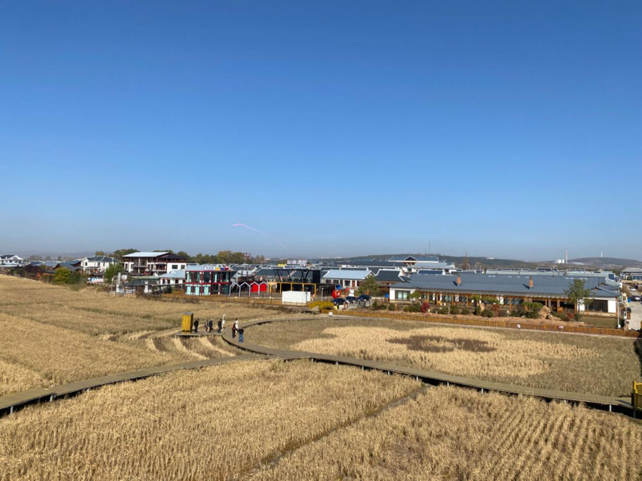 金色的稻浪襯托著白墻黛瓦的朝鮮族特色民居,“鄉村振興 中興先行”的褐色稻田畫成為醉人景觀。
