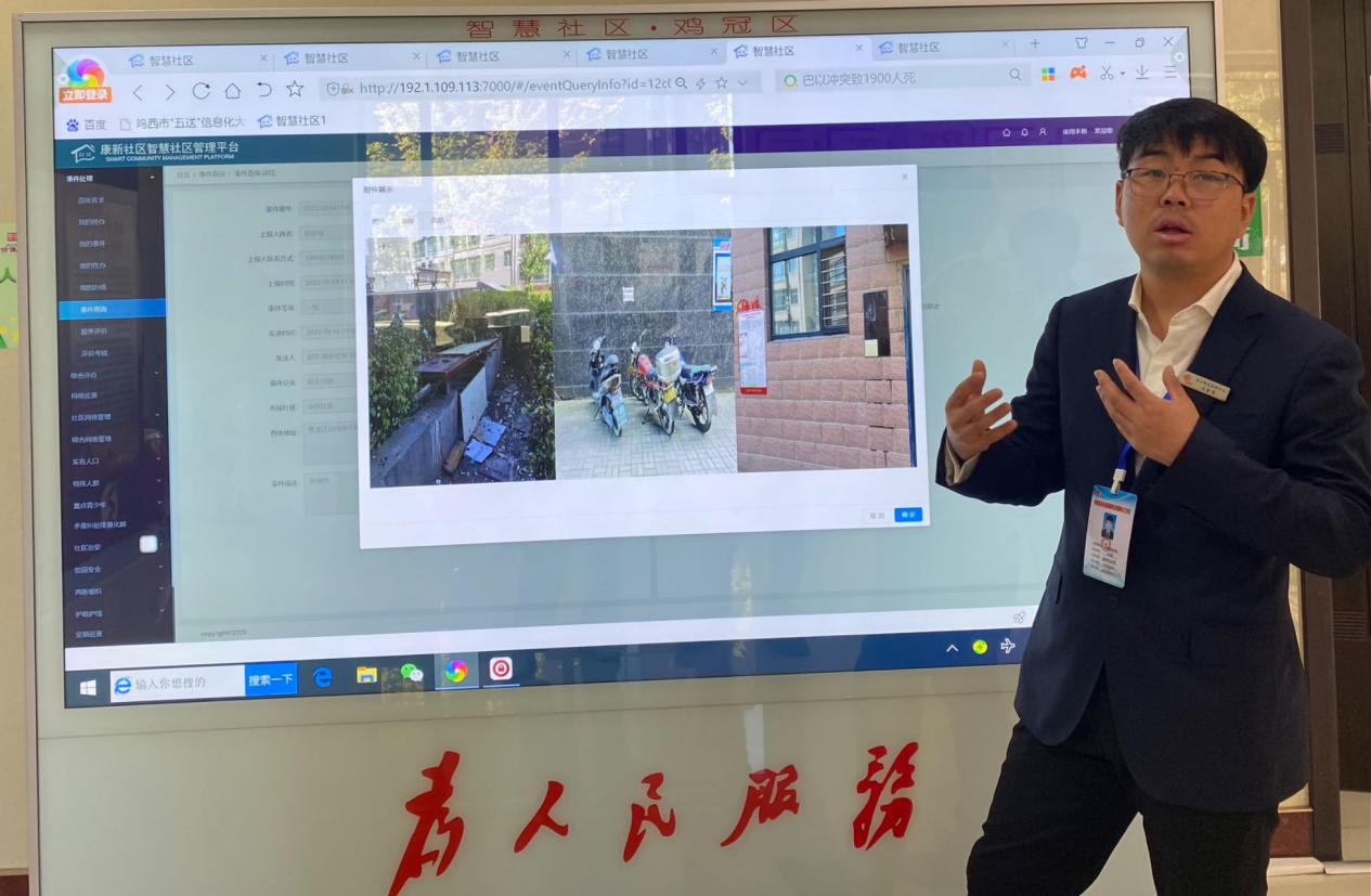 該系統已經完全投入使用,涉及社區綜治、基礎資源、智慧服務等8大方向、200余個細分功能項,涵蓋從社區治理到社區服務全方面。雞冠區智慧社區累計開通9余個街道(鄉)、36個社區(村)、419個實有小區、671個網格、近千名網格員。自上線以來累計閉環處理事件近6萬件,百姓滿意度提升95%。