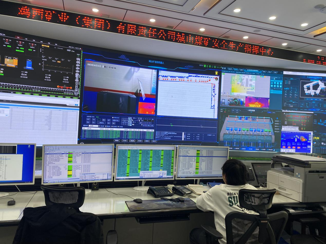 在大屏上,記者看到自動巡檢機器人正在近千米的礦井下有條不紊地檢查配電柜、變壓器等設備,搭載的高清攝像頭和紅外成像儀將現場圖像數據實時采集,重點視頻畫面在大屏上同步顯現。
