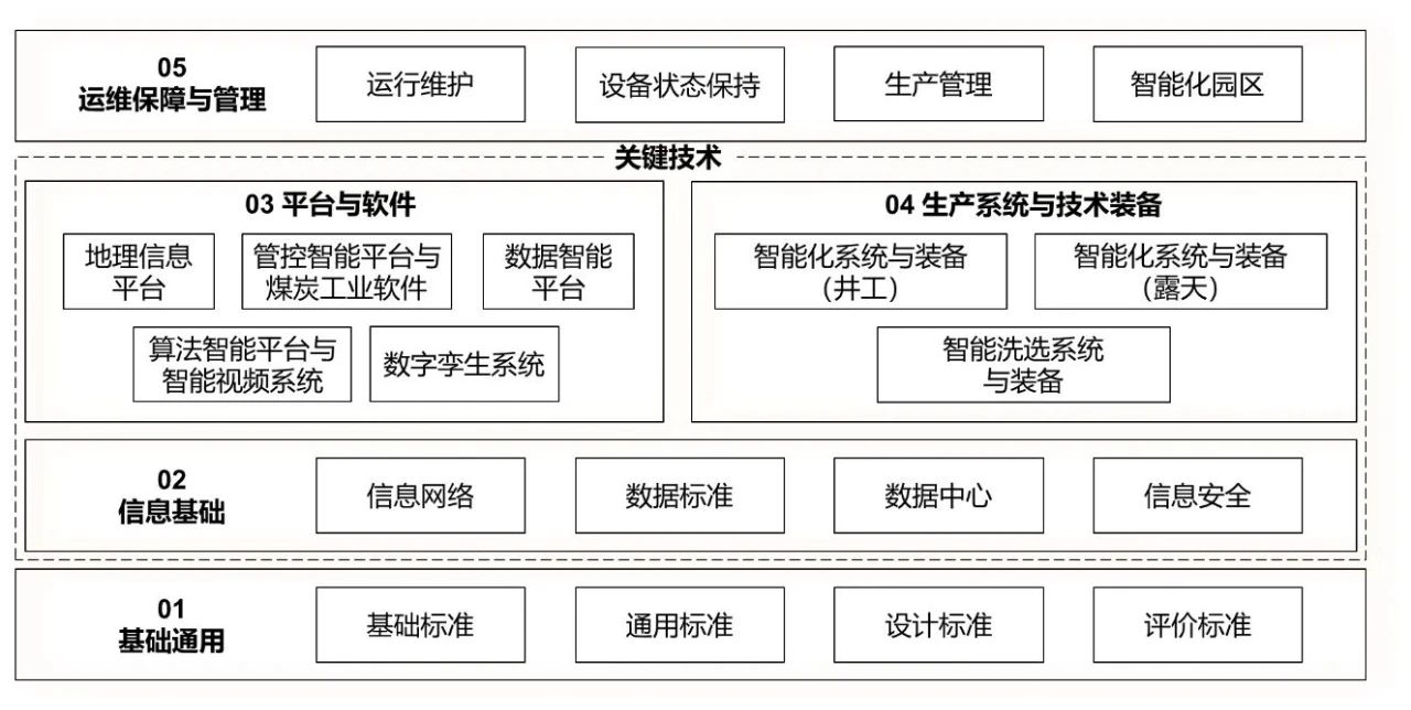 2.管控智能平臺與煤炭工業(yè)軟件標準,主要包括煤礦智能化綜合管控平臺與煤炭工業(yè)軟件的技術(shù)架構(gòu)、功能要求、評估指標、應(yīng)用管理等方面標準。