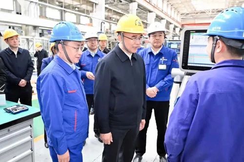 在哈爾濱汽輪機廠,許勤看望慰問全國勞動模范、2023年“大國工匠年度人物”董禮濤和他的團隊。