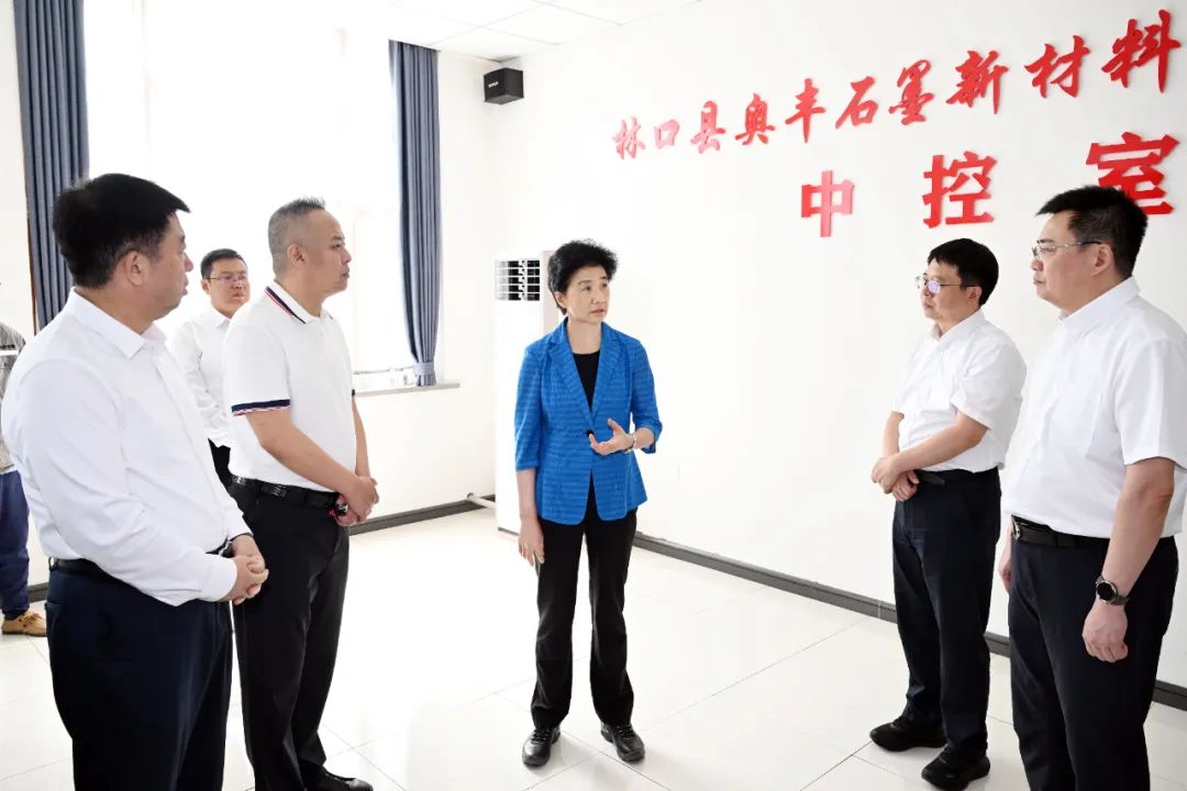 在林口縣奧豐石墨新材料有限責任公司,省委副書記、省長梁惠玲考察產業項目運營情況。