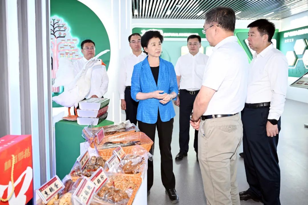 在中林天恒食品有限公司,省委副書記、省長梁惠玲了解鵝產業發展情況。
