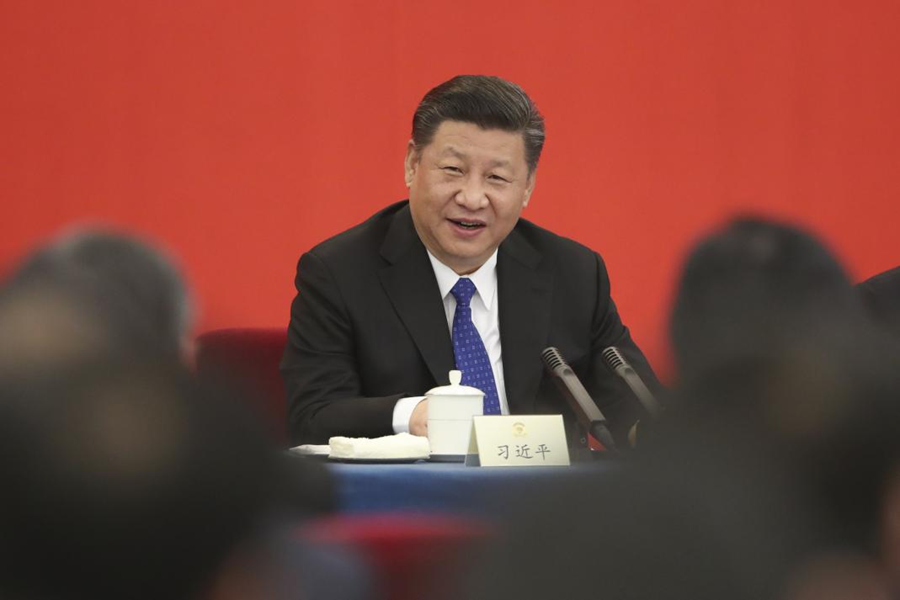 2018年3月4日下午,中共中央總書記、國家主席、中央軍委主席習近平看望參加全國政協(xié)十三屆一次會議的民盟、致公黨、無黨派人士、僑聯(lián)界委員,并參加聯(lián)組會,聽取意見和建議。新華社發(fā)(盛佳鵬 攝)