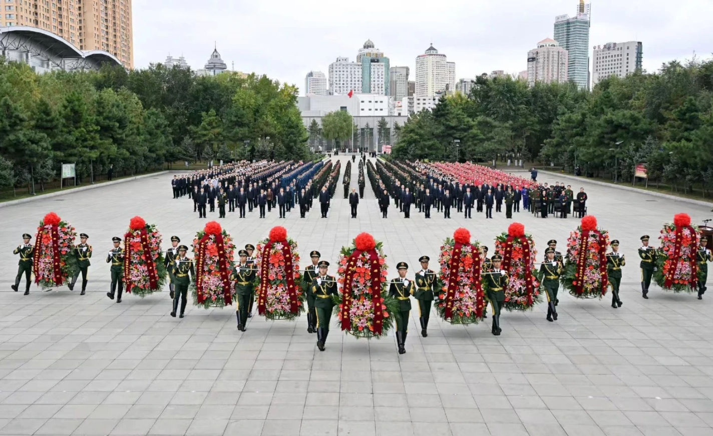 黑龍江省暨哈爾濱市烈士紀(jì)念日向英雄烈士敬獻(xiàn)花籃儀式現(xiàn)場(chǎng)。
