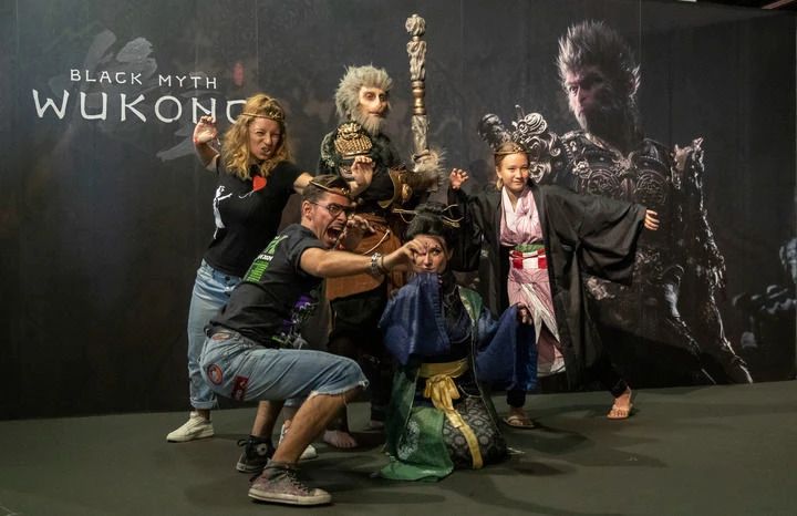 2024年8月22日,人們在德國2024年科隆國際游戲展《黑神話:悟空》拍照區拍照。新華社記者 張帆 攝