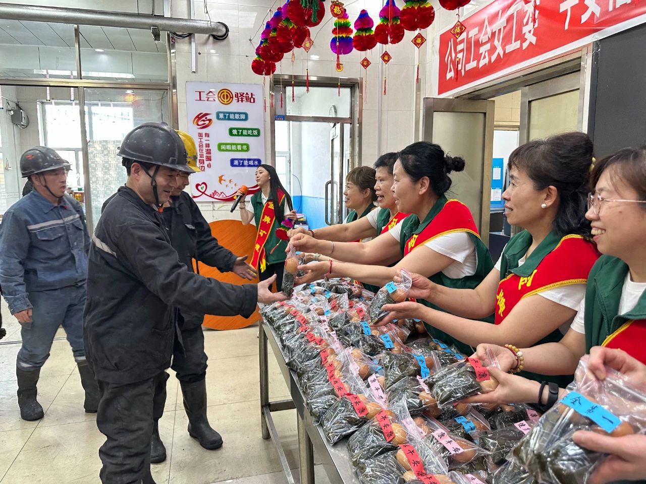 在新安礦入井走廊,現場洋溢著濃濃的節日氛圍。“端午安康,吃個粽子,下井注意安全!”金牌礦嫂們一邊遞上粽子和雞蛋,一邊親切地叮囑著。職工們接過慰問品,臉上洋溢著幸福的笑容,紛紛表示,一定牢記安全,為企業攻堅克難爭做貢獻。